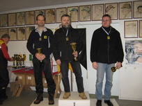 ![]() Palkintopallila vas. hopea Bror Skogster SSG. Y60 | ![]() Vas. hopea Boris Stjernberg BS-PA Y 75 | ![]() Oik. pronsi Tom Sved SSG Y 50 |